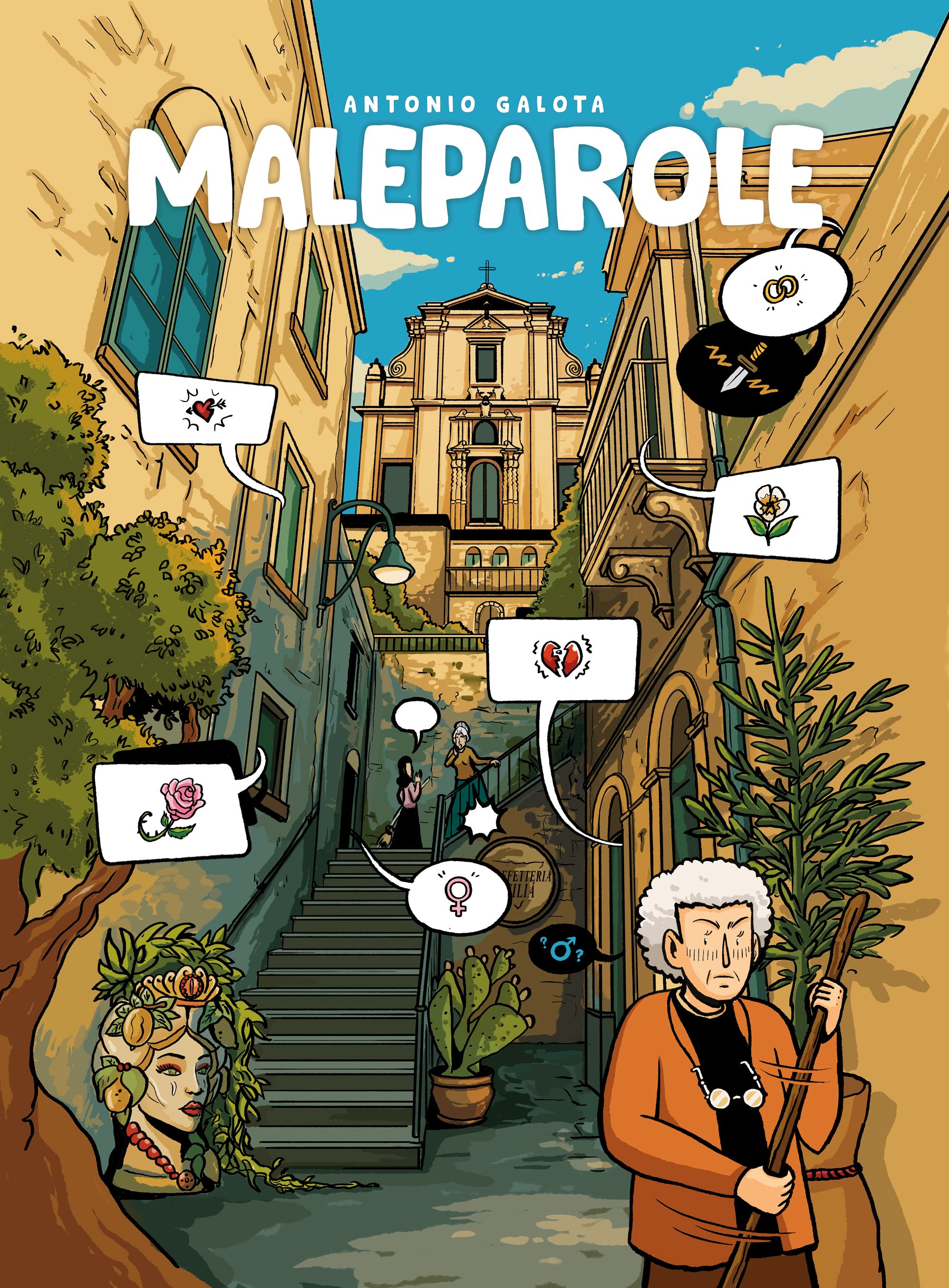 Ambientato nella Sicilia di qualche decennio fa, Maleparole è la storia di Rosa, persona nonbinary, segretamente fidanzata con Pietro che vorrebbe finalmente sposarla. Ma il parroco del paese si oppone a causa delle voci che girano su di lei, che la vorrebbero un “maschio” travestito. Triste, Rosa gira per il paese e finisce per ascoltare i pettegolezzi di quattro vecchiette che sparlano di lei…